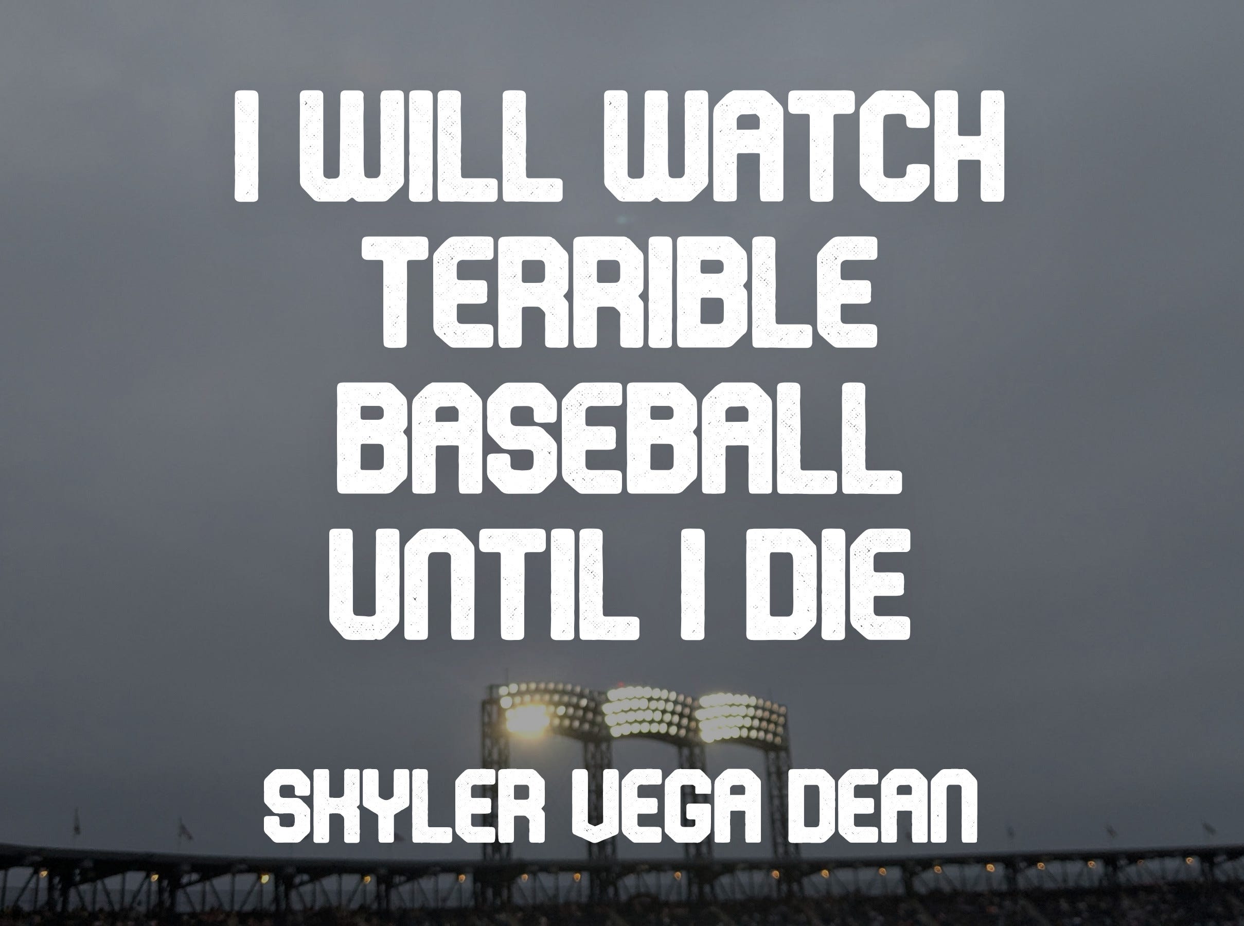 One only needs to look at the players themselves for a cue: people for whom every play on the field is factored into hyper-scrutinized metrics by both fans and managers alike, people whose image and future are in jeopardy if those metrics are deemed insufficient. Those people, for whom millions of dollars are on the line, are slumping over the top of the dugout with their arms limp in the air. One of them is seeing how many of his teammates’ caps he can stack on top of his head. They look like middle schoolers whose parents are an hour late to pick them up from band practice.