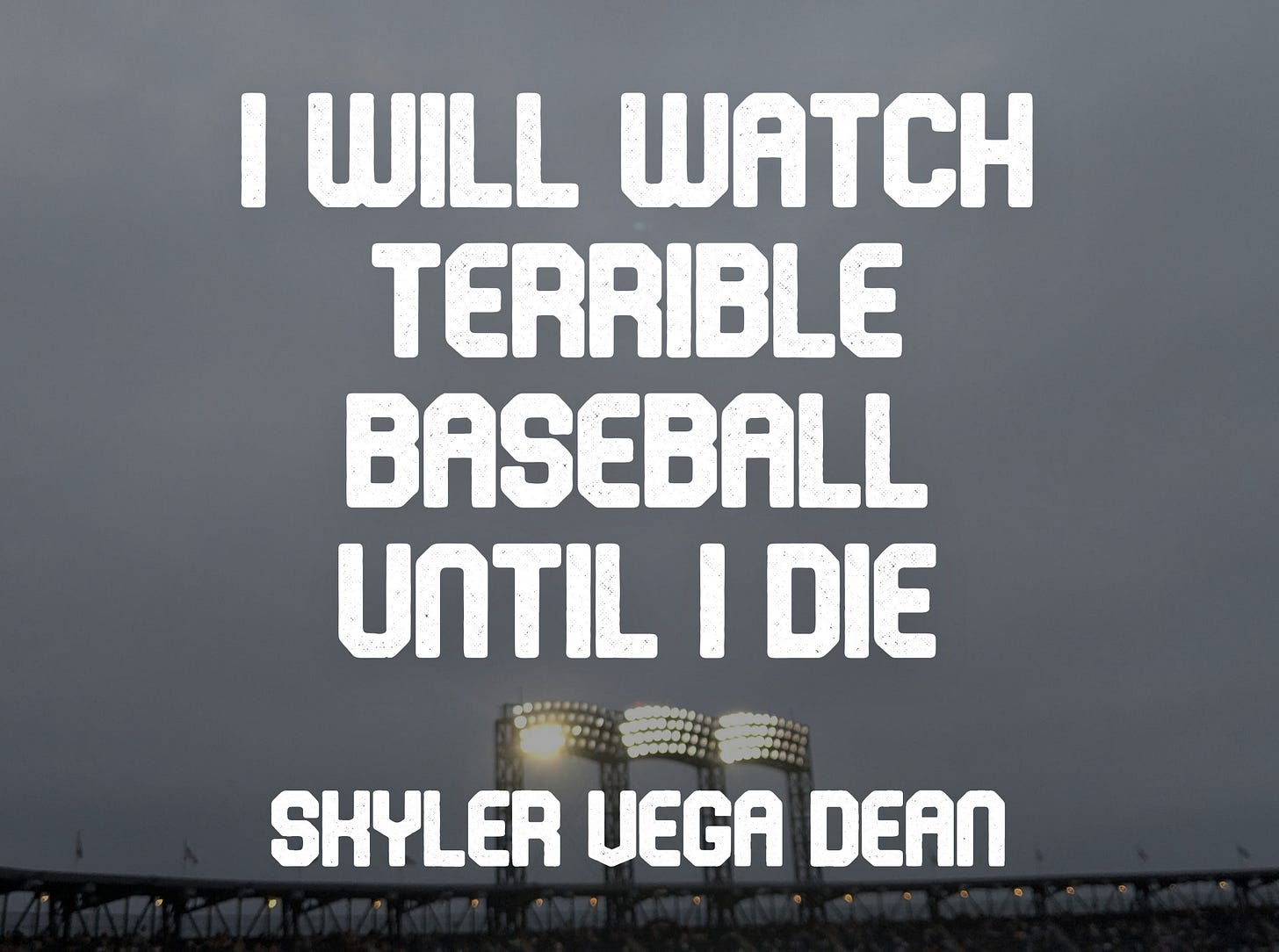 The thing I love most about Baseball is that it’s the only major sport in America that doesn’t end when a clock hits zero, but when a certain condition (27 outs per side) is fulfilled. Because of this feature, it’s always technically possible to win. Sure, your team might be down by seven runs with two outs in the bottom of the ninth, but there’s no law in the rulebook or physics that says you can’t score eight runs in a row. The game is always daring you to believe something amazing can happen. It almost never does, but the hope stays alive. In this, of all years, I think that’s something a lot of us can use.